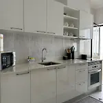 Het strand appartement biedt gasten een balkon en een keuken, evenals modern comfort zoals airconditioning en een wasmachine.